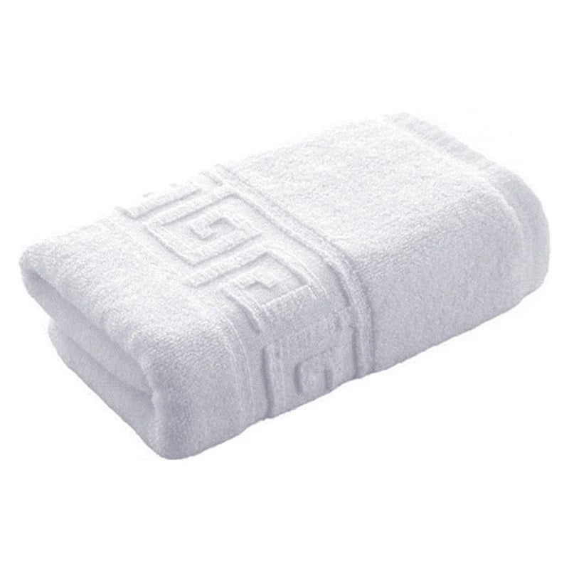 Prosoape albe Hotel, model Greek Border realizate cu fir dublu rasucit din fibra naturala din bumbac 100%. Au putere ridicata de absorbtie datorita grosimii de 620gsm .