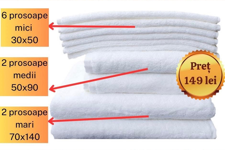 Set 10 Prosoape 100% Bumbac, model Clasic, Alb, MXT11