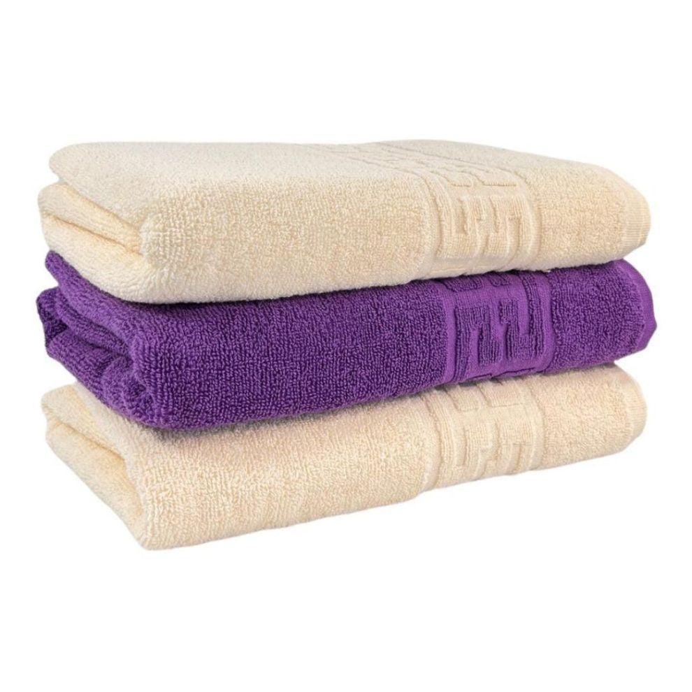 Set 3 prosoape corp, Bumbac 100%, 70x130 ,Model Greek Border, Crem-Mov, PCM22