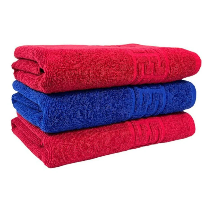 Set 3 prosoape medii, Bumbac 100%, 50X90 ,Model Greek Border, Rosu-Albastru, PF19